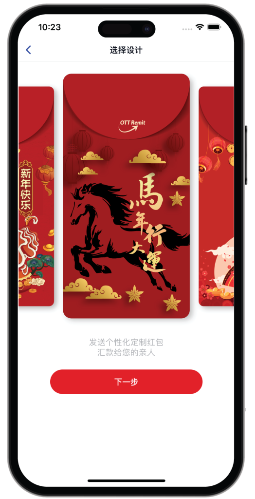 With OTT Remit, you can send red envelopes with heartfelt messages or choose from a selection of greeting cards that you can send along with your money transfer.